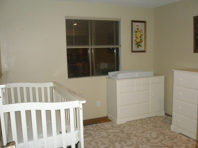Almost finished here--Travis spent a good 3 days assembling it all. Since we are having a boy, he used wood glue on the dresser and changing table and it took a while to dry.