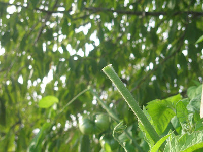A sad sad event- I had to remove the tops and blossoms that were going to hold back my tomatoes from ripening. Sacrifice the natural growth and a dozen tomatoes to get more light in for ripening.